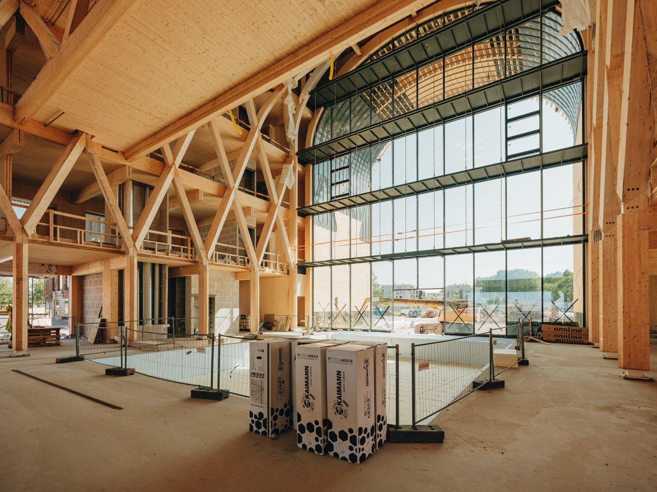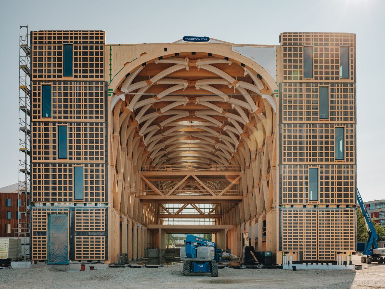 BSH-Bauteile (4300 m³ CLT und 980 m³ BSH), EstNor für die Fassaden und Dächer