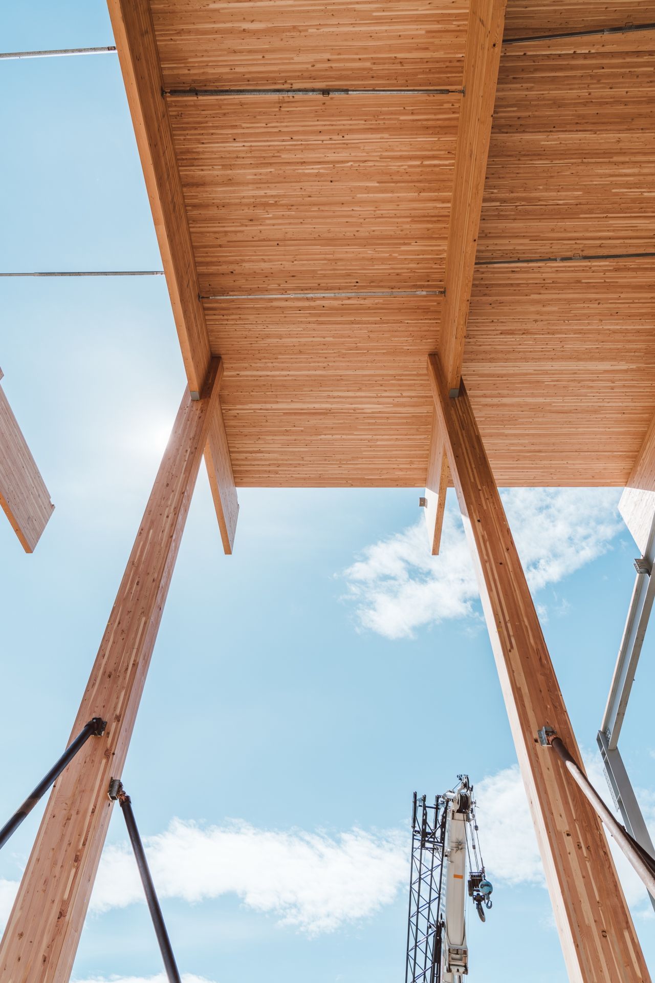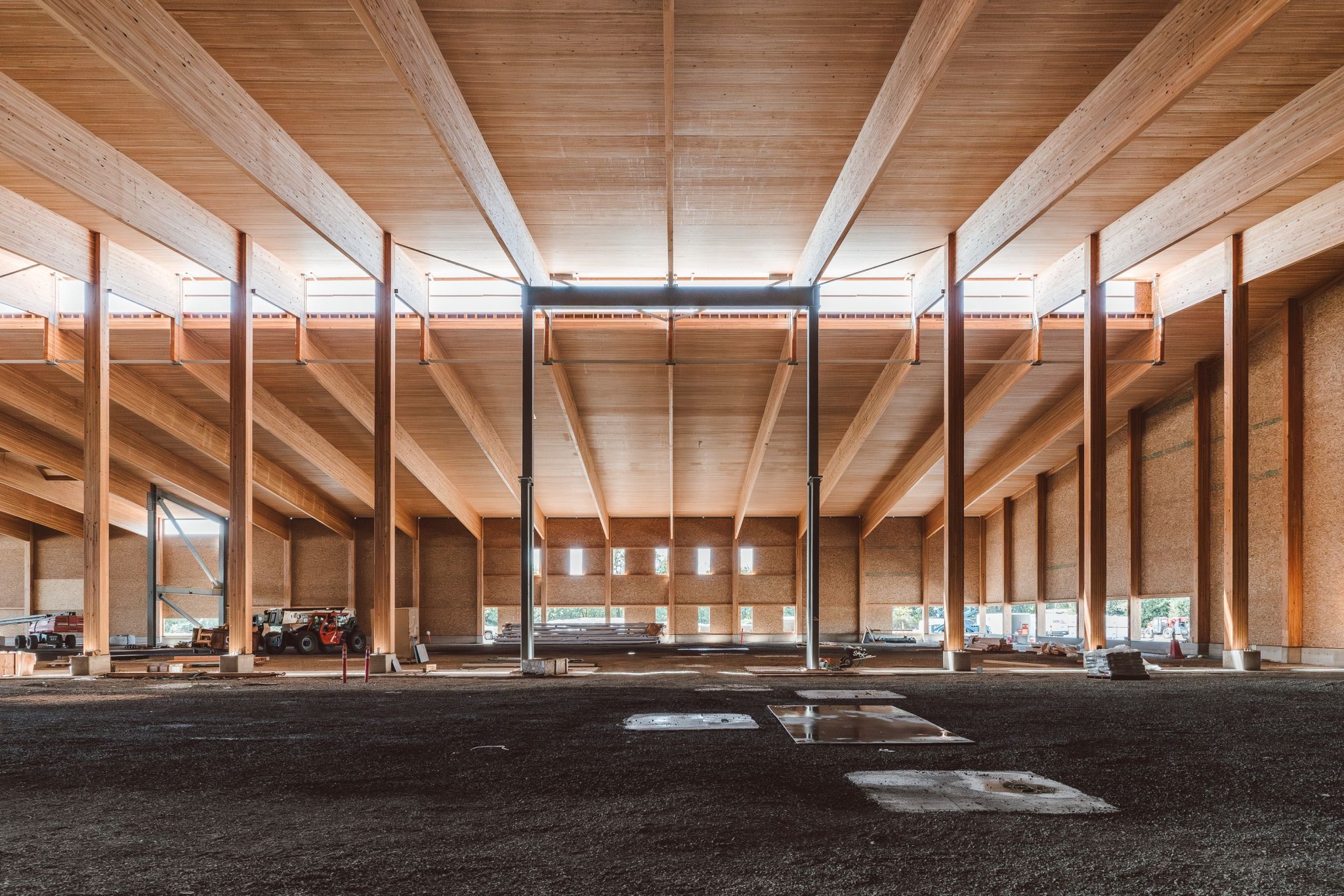 CLT-Produktionshalle mit großer Spannweite und viel Platz