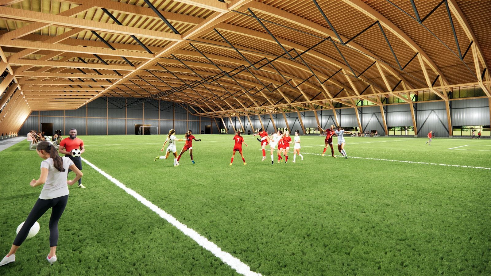 Als wichtiges erstes Puzzlestück des Projekts kristallisierte sich ein überdachter FußballRasenplatz mit Laufbahn heraus. Weitere waren Multifunktionsbereiche, die unabhängig vom großen Rasenplatz genutzt werden können: Flächen für Basket- und Volleyball, Konzerte und Aufführungen, Schulungen, Tagungen und Sitzungen, außerdem ein Fitness-Center, Aufenthaltsräume sowie eine Cafeteria. Die Planung und die Beschaffung der benötigten Mittel nahm mehrere Jahre in Anspruch. Der erste Spatenstich am 12. September 2024 markierte den Baubeginn für das Projekt mit einem Volumen von rund 47 Mio. USD. Gebaut wird durch Generalunternehmer Alvin H. Butz, Inc.. Im Sommer 2026 soll der 17.500 m² große Komplex eröffnet werden. Spektakulärste Struktur ist dabei die 12.000 m² großen Fußballhalle mit einem Leimholz-Tragwerk mit 85 m Spannweite, die von HKA5 (Howard Kulp Architects) entworfen wurde. Die Planung des Holztragwerks und der Ingenieurholzbau kommen von StructureCraft.