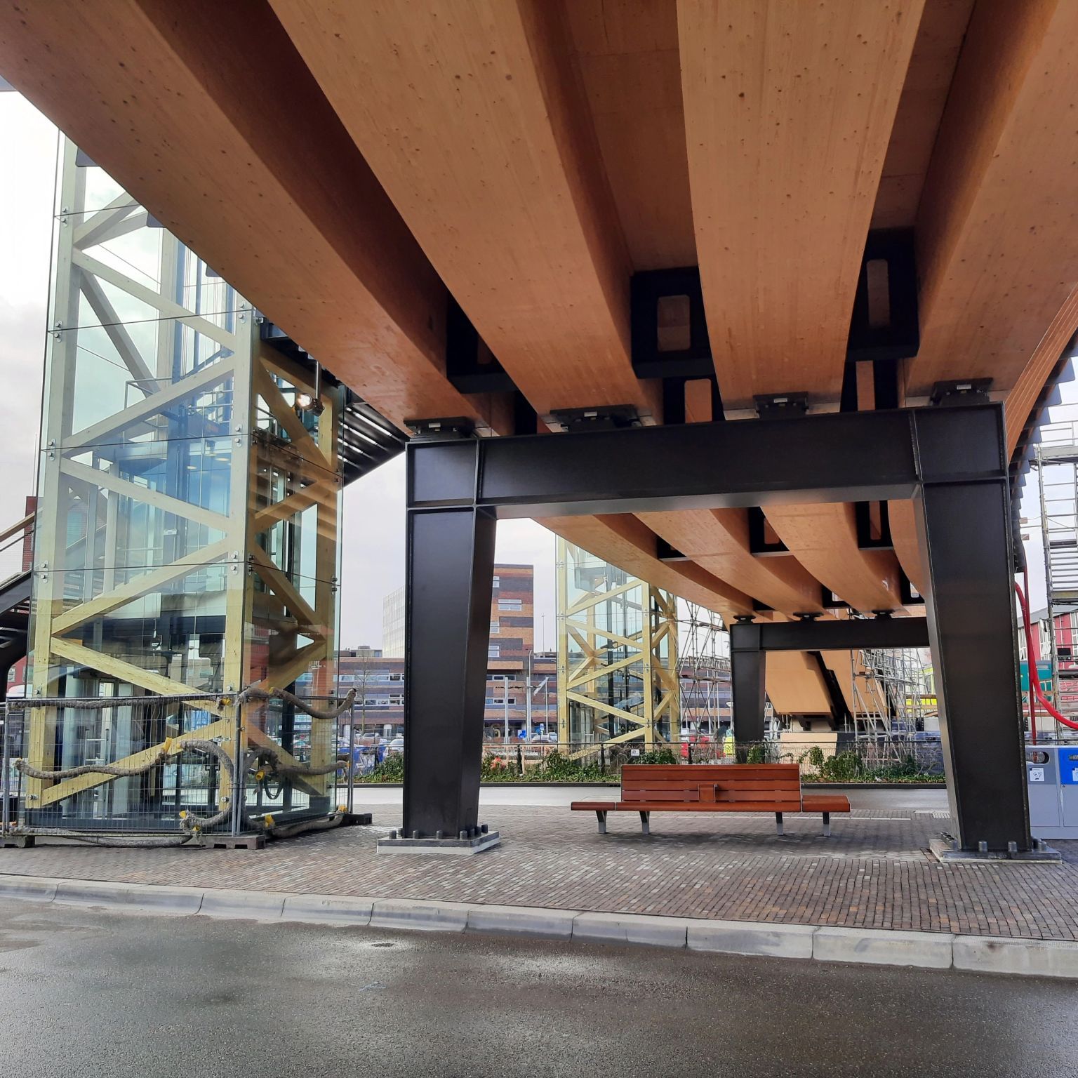 Im Auftrag der Gemeinde Zwolle und des niederländischen Bahnbetreibers ProRail ist in den zurückliegenden Monaten im Zentrum von Zwolle (Provinz Overijssel) eine 130 m lange Fußgängerbrücke („Passerelle“) über das Gleisvorfeld des Bahnhofs Zwolle errichtet worden. Die Holzbrücke soll hier aber mehr leisten, als für Bahnreisende die Bahnsteige mittels eines „Stegs“ zu erschließen. Sie schafft gleichzeitig eine Verbindung zwischen dem historischen Zentrum von Zwolle und dem Quartier „Spoorzone“ an der Südseite des Bahnhofs. Letzteres erfährt eine deutliche Aufwertung durch eine verbesserte Erreichbarkeit.
