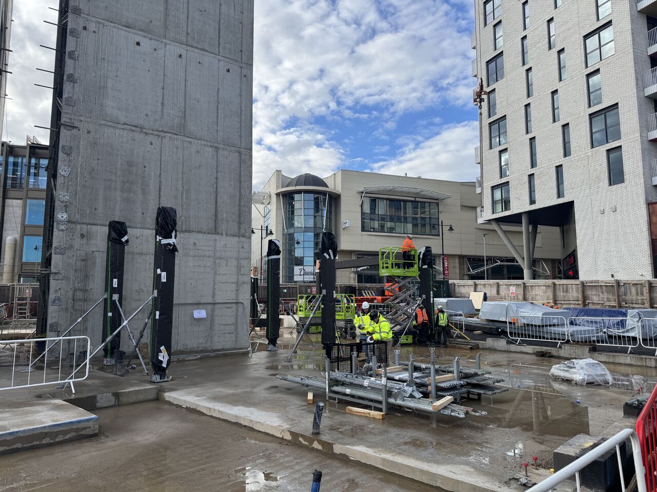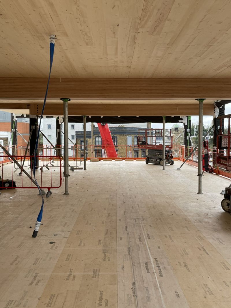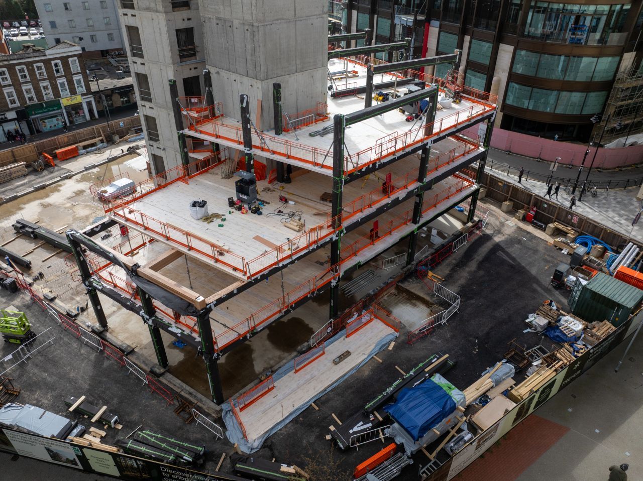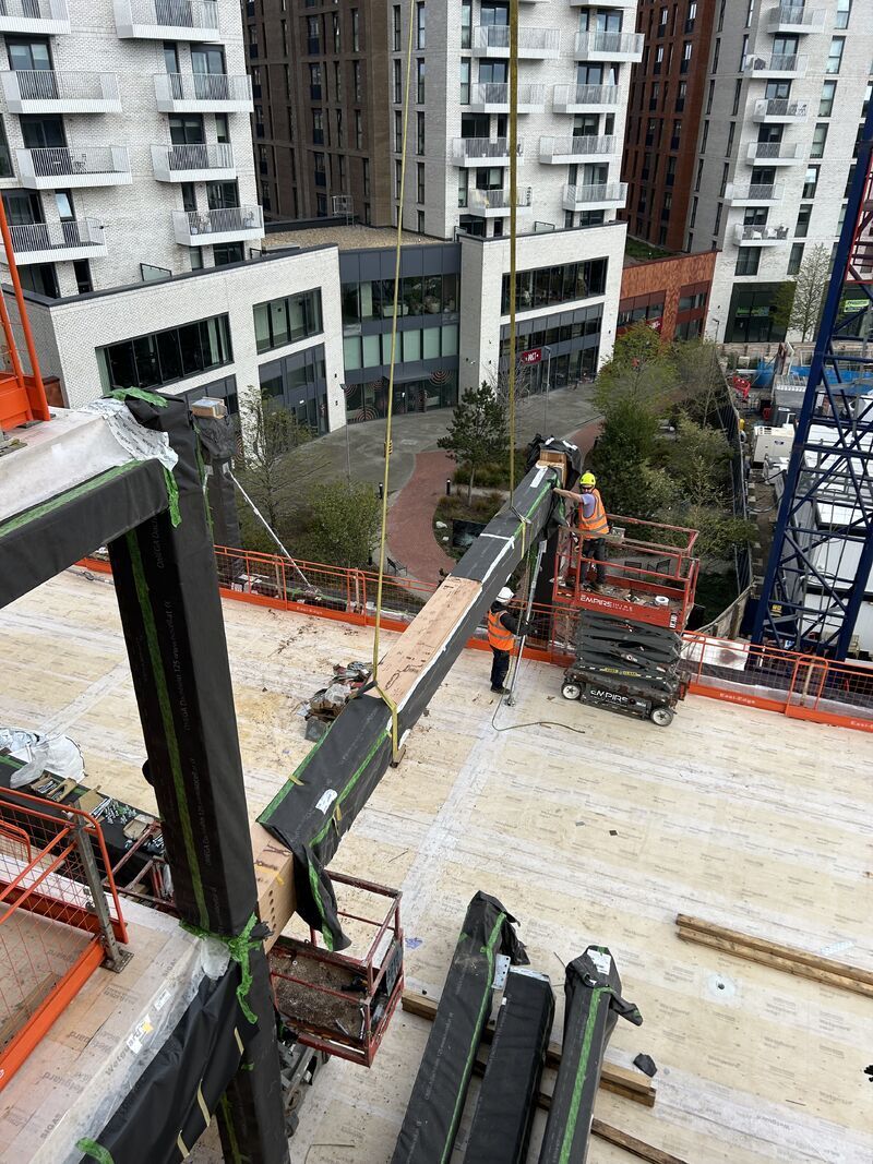 Im englischen Maidenhead - 20 km westlich von London-Heathrow - wurde vor gut einer Woche mit der Signierung des letzten Holzträgers der Abschluss der Montage des Holztragwerks eines sechsgeschossigen Gewerbebaus gefeiert. Der britische Developer HUB (hubLiving) und die norwegische Fondsgesellschaft Smedvig Capital investieren in zentraler Lage am Bahnhof der Stadt (60.000 Einwohner) in ein Vorzeigeprojekt mit rund 6.000 m² Büro- und Einzelhandelsflächen mit hohem Anspruch an die Gebäudenachhaltigkeit (ESG-Kriterien) und vergleichsweise kleinem CO2-Fußabdruck.
