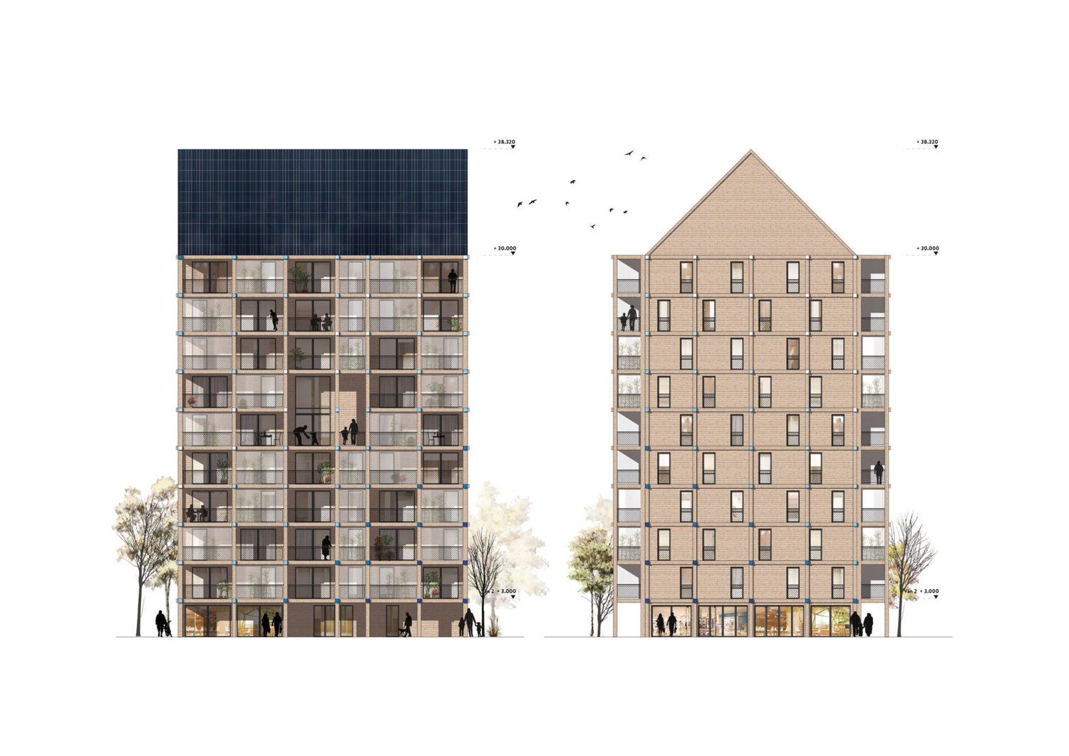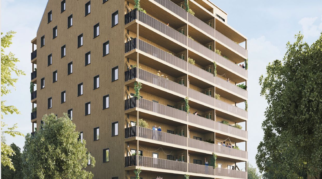 Wer sich in das Haus einmietet, hat bei ETC Bygg automatisch Zugriffsrecht auf einen E-AutoPool und Lastenfahrräder – ohne monatlich Zusatzkosten. Bezahlt wird nach Nutzung. Die südliche Fassade, das (Sattel-)Dach und die Brüstungen der Mieterbalkons werden mit PVModulen bestückt. Die Bewohner sind angehalten, auf den Balkons zu gärtnern. Ab Januar 2026 sollen die Wohnungen bezogen werden können.