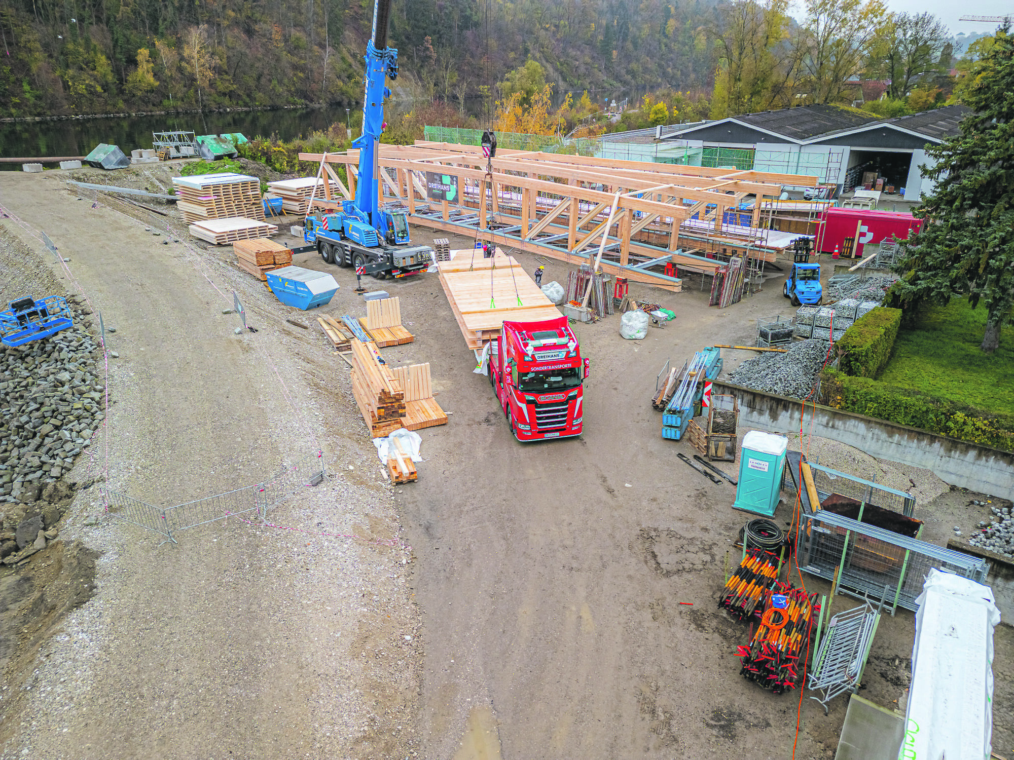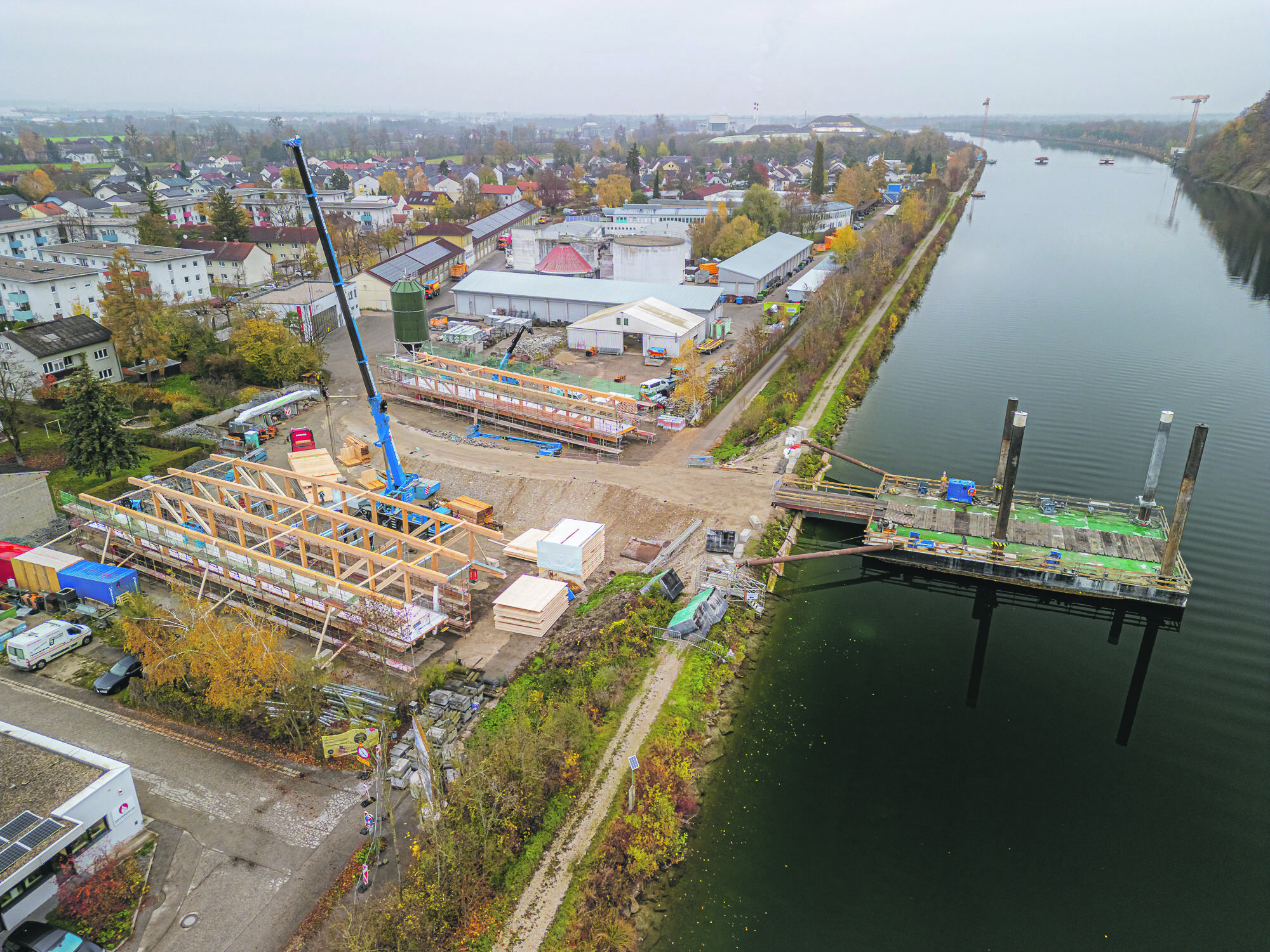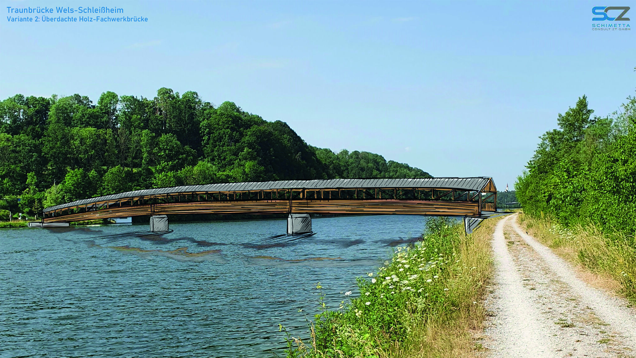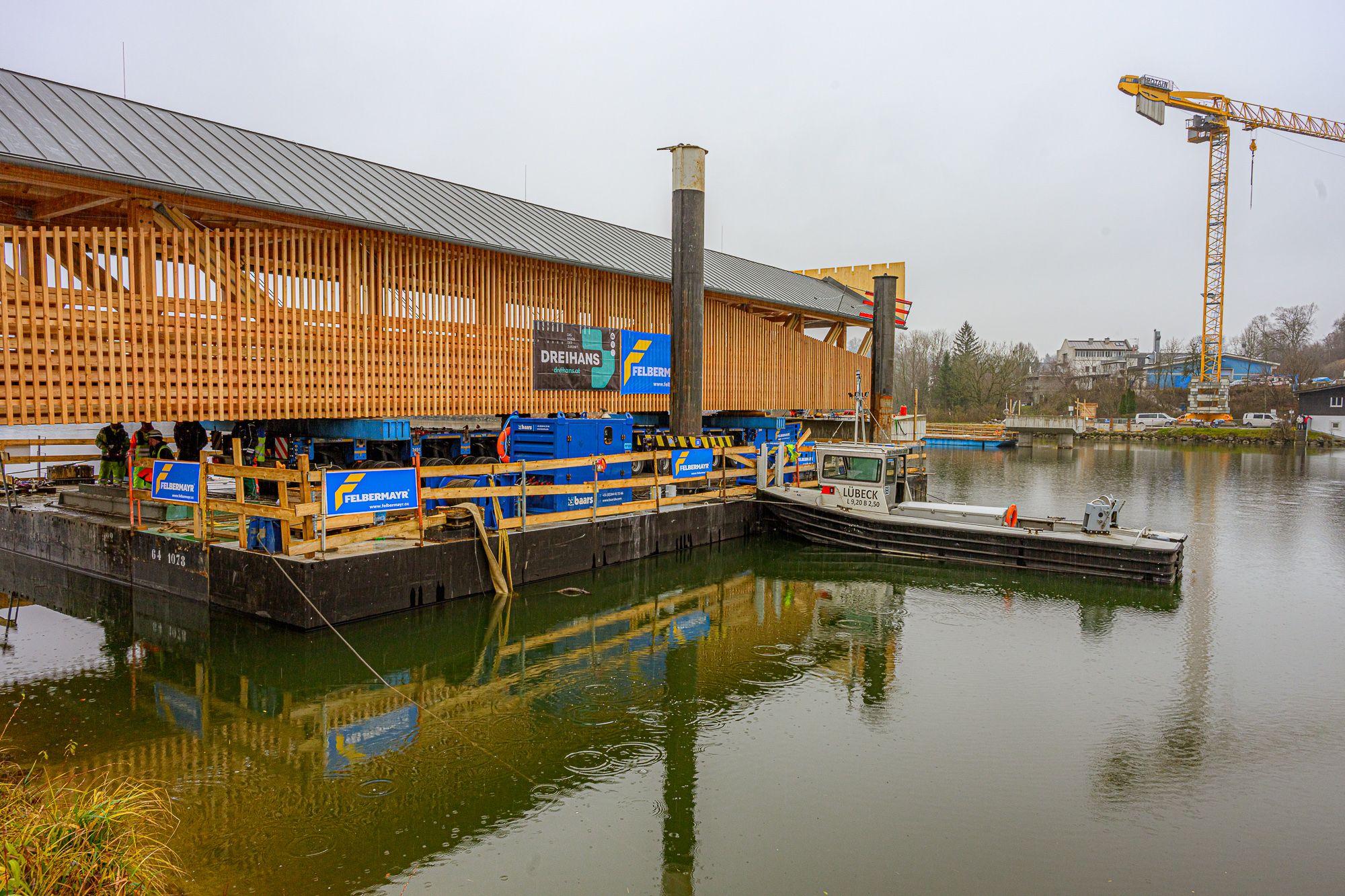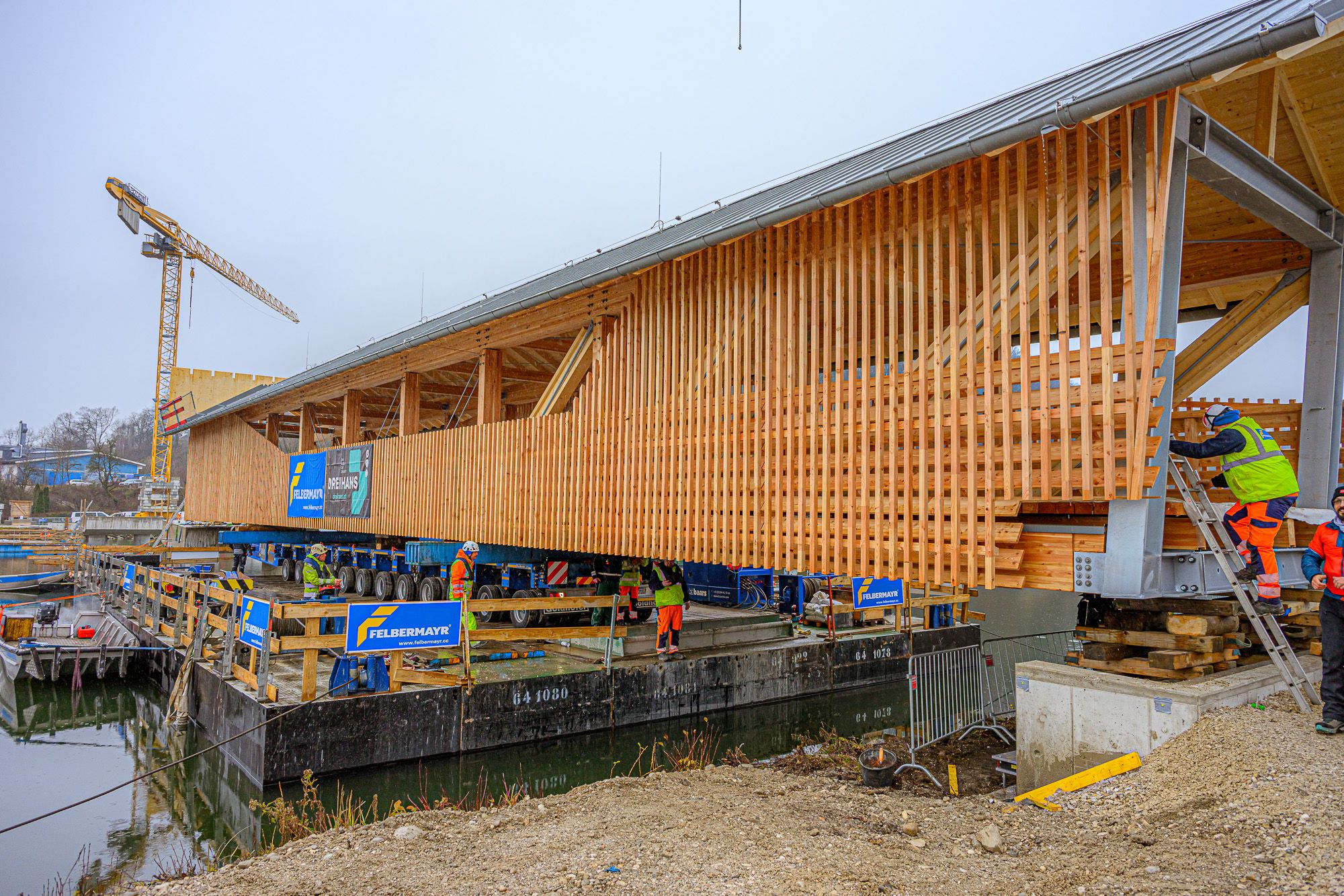 Mit dem Einschwimmen von drei Teilen einer Geh- und Radwegbrücke auf ihre Widerlager gibt es seit dem 9. Dezember in Wels (Oberösterreich) eine weitere Traun-Brücke. Die Traun ist ein Donau-Zufluss, der von Traunsee und Attersee gespeist wird. Die überdachte Fachwerkbrücke wird im kommenden Frühjahr freigegeben. Sie verbessert die Verbindungen zwischen Wels und der Gemeinde Schleißheim und stellt einen Lückenschluss im überregionalen Radwegenetz dar.