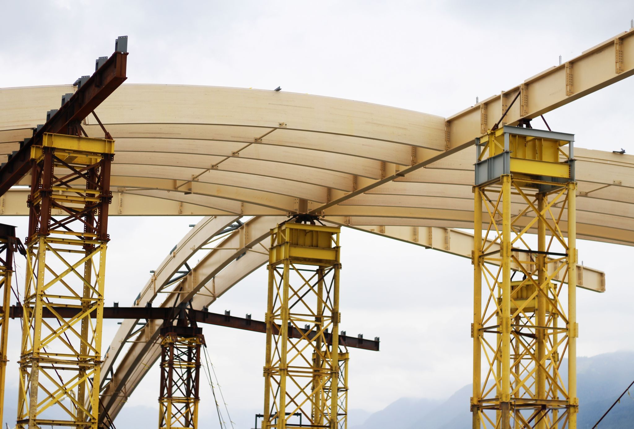 60 bogenförmige Leimbinder aus der Produktion von Nordic Structures bilden, zu sechs kalottenförmigen Segmenten angeordnet, das in der Mitte 24 m hohe Dach der „Freedom Mobile Arch“, wie das PNE-Amphitheatre künftig heißen soll. Es bleibt an drei Seiten offen und ermöglicht dem Publikum auch künftig Blicke über die Stadt und auf das Fjord- und Bergpanorama der North Shore Mountains, um vom Charme der alten Arena einen Teil in die Zukunft mitzunehmen.