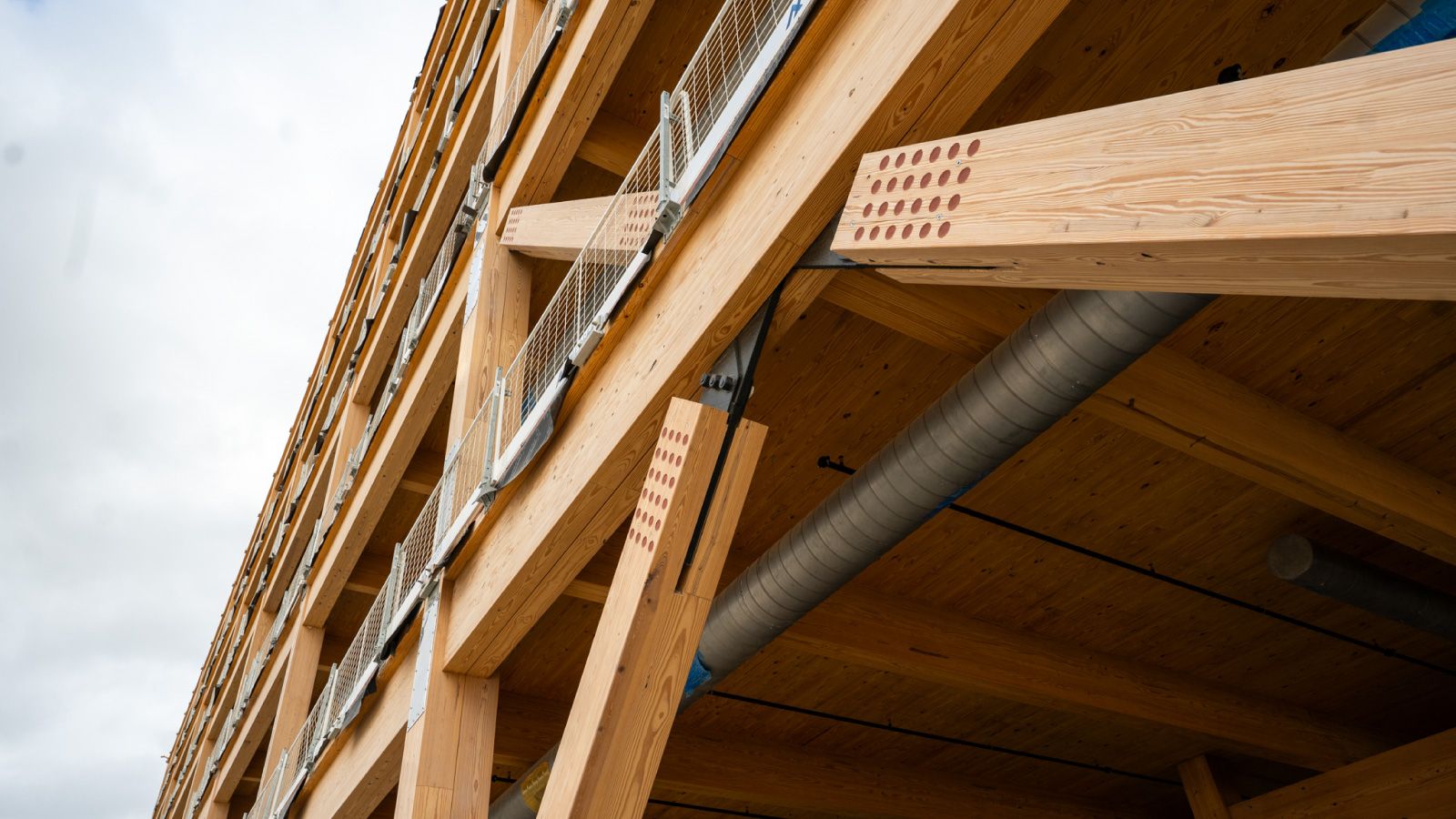 1.000 Fahrradabstellplätze) und nachhaltigen Bauweisen (Holztragwerke mit viel