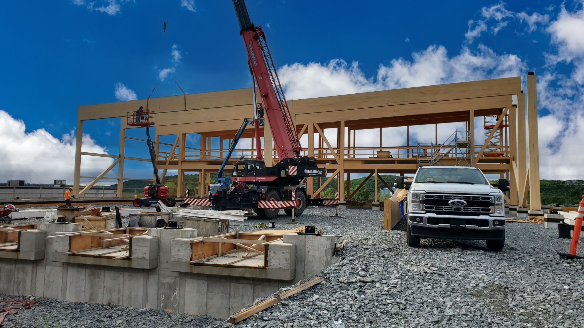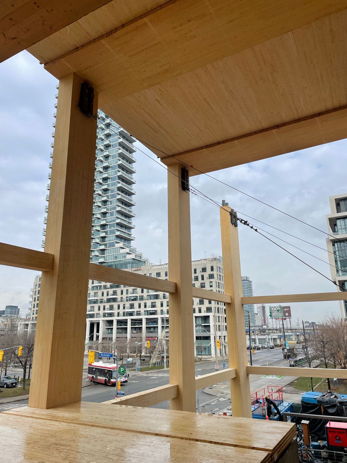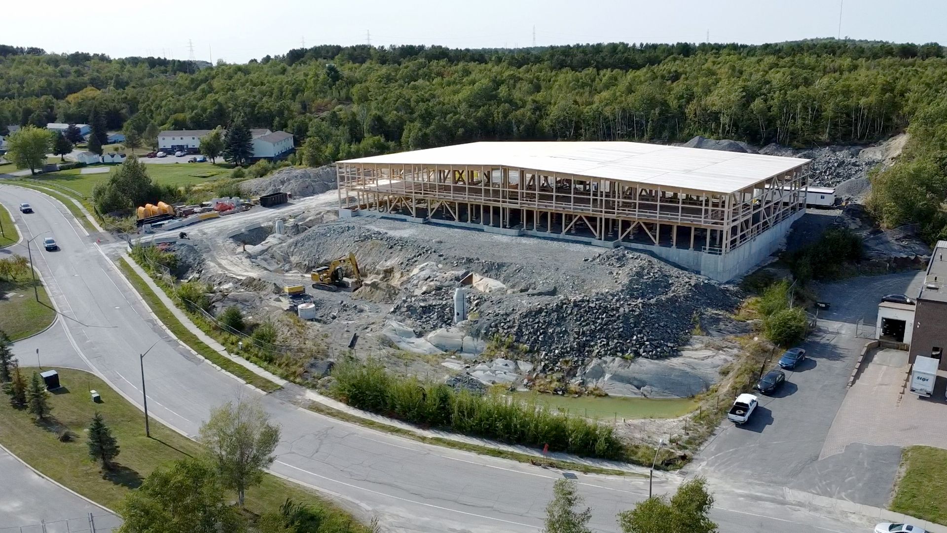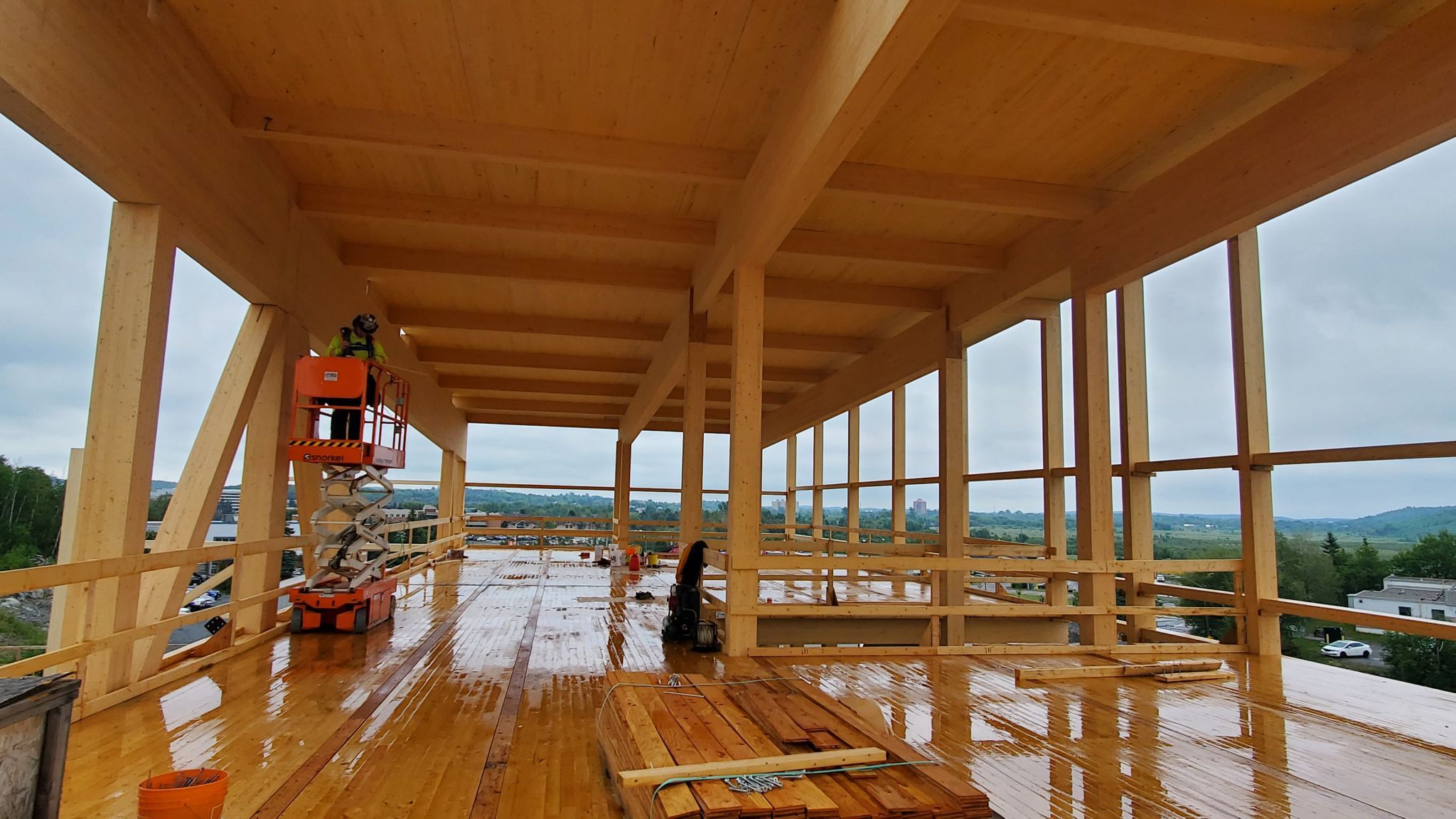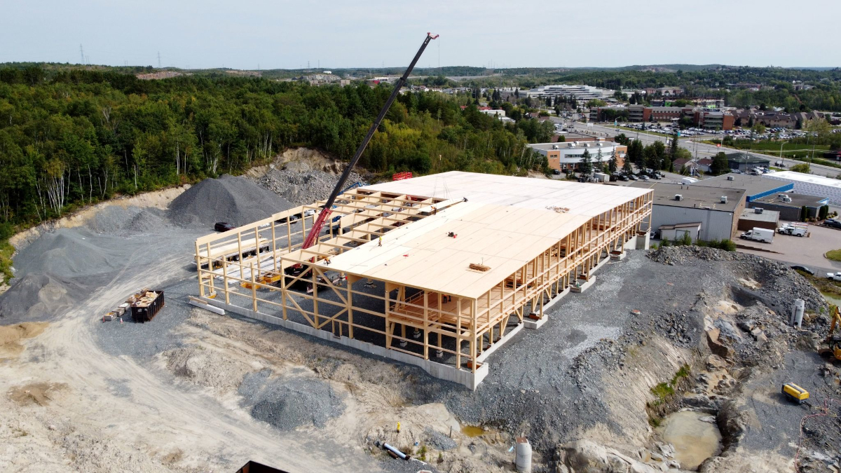 Die Montage des Massivholz-Tragwerks (IV-HT) hat die Firma TERGOS Architecture et Construction vorgenommen. Die Holzbauteile (Bauholz, gerades BSH, Leimbinder und Brettsperrholztafeln) hat Nordic Structures geliefert. Sudbury (160.000 Einwohner) liegt rund 400 km nördlich von Toronto am Rande einer Bergbauregion mit Vorkommen an Nickel und Kupfer.