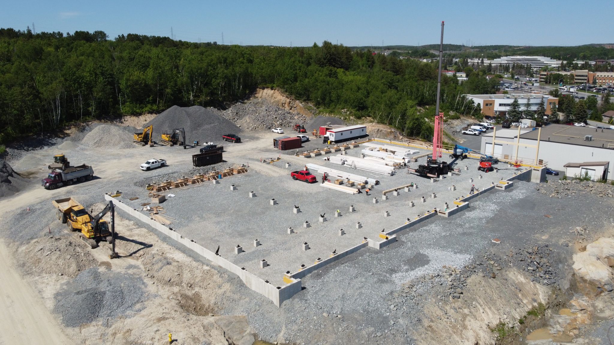 Im Südosten der kanadischen Provinz Ontario ist im vergangenen Jahr das Tragwerk dieses sehenswerten Lagerhauses errichtet worden. Der Entwurf für die 4.500 m² große Halle in Cambrian Heigths (Greater Sudbury) stammt vom Büro D A O - Danielson Architecture Office Inc. im Auftrag von Bloomington Developments.