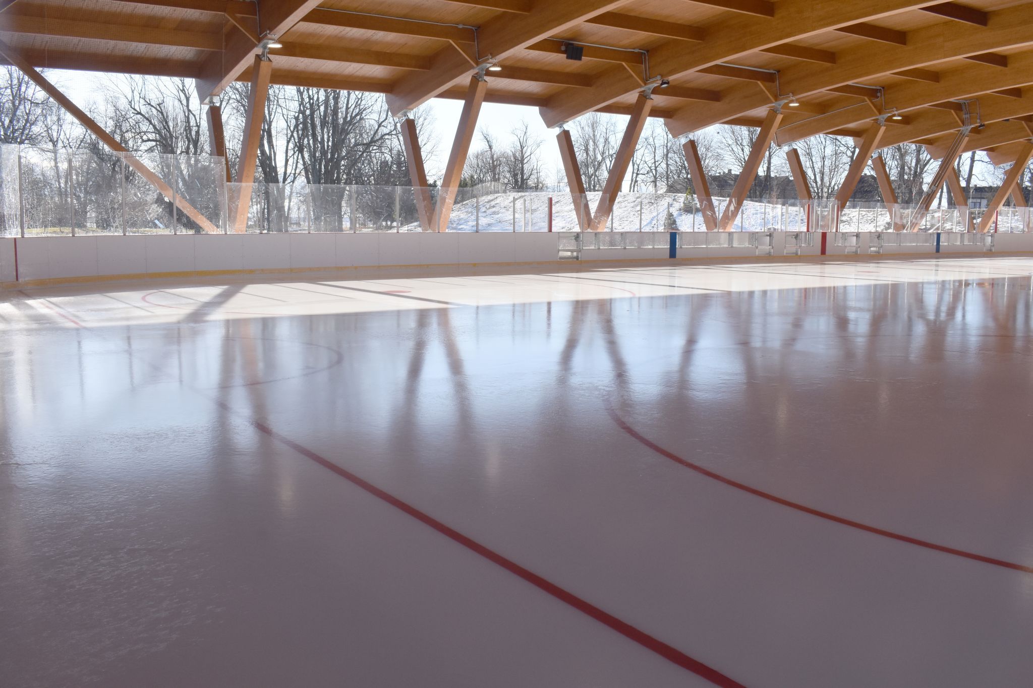 Unter dem Holzdach ist von November bis März Eissport möglich, in den übrigen Jahreszeiten wird die Fläche als Mehrzweckplatz genutzt, unter anderem für Feldhockey und Basketball. Die Eisbahn entspricht den Standardmaßen der Nationalen Eishockeyliga (26,21 x 61,26 m). In einem Servicegebäude daneben sind die Umkleideräume und ein Lagerraum für die Gerätschaften zur Eisaufbereitung untergebracht.