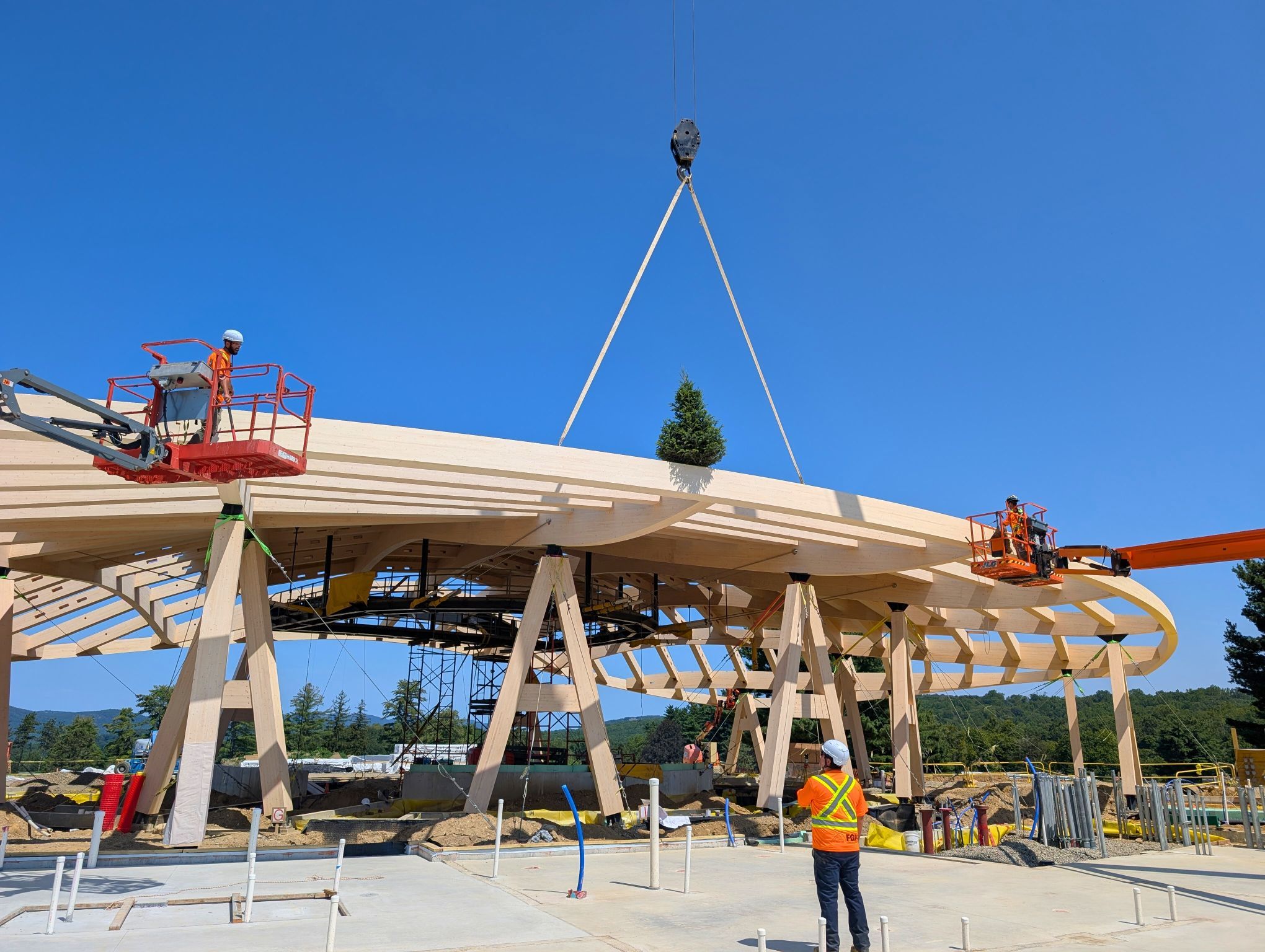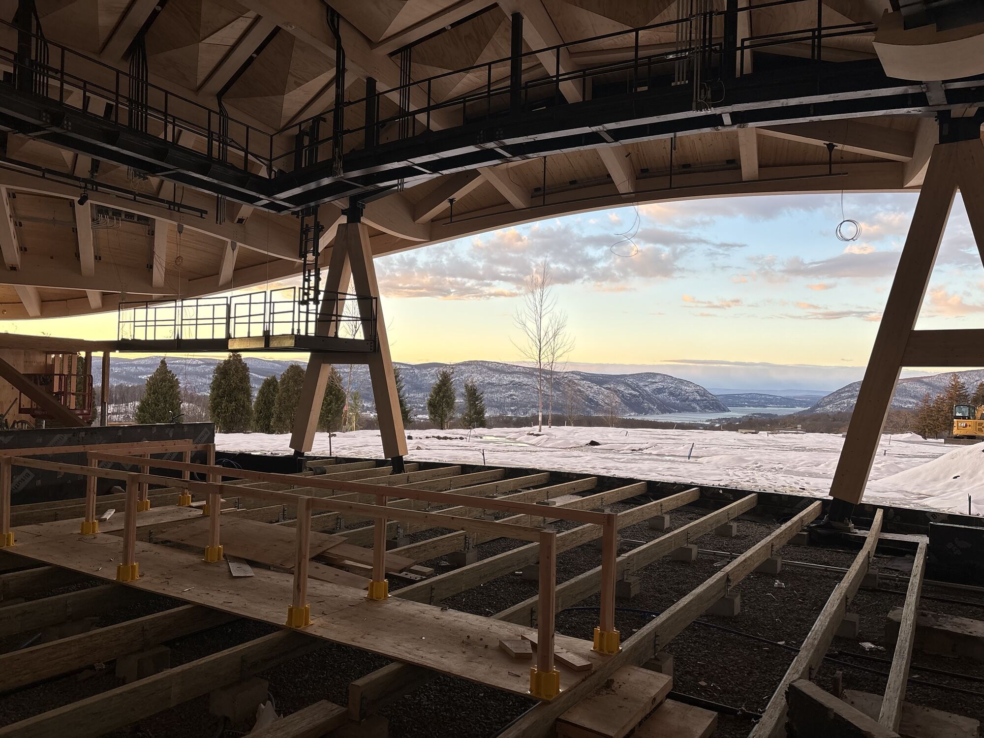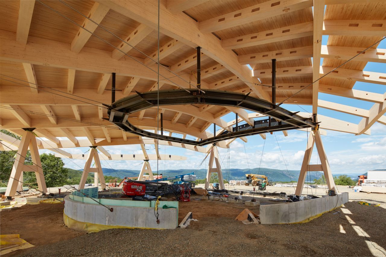 Der Neubau für die Bauherrin HVS wurde auf der Basis eines Entwurfs des Architekturbüros Studio Gang von der Baufirma Consigli Construction Co., Inc. errichtet. Die Tragwerksplanung erstellte Thornton Tomasetti, die Leimholzbauteile (BSH) lieferte Art Massif aus Quebec/Kanada. Die Freiluftbühne soll im kommenden Sommer fertig werden.