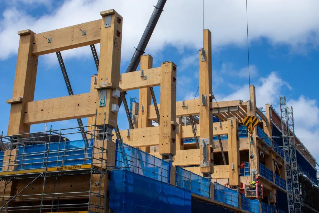 Jeder der H-Rahmen besteht aus 80 cm dicken BSH-Stützen, die durch drei massive Stege verbunden sind und 18,5 t wiegt. Gebaut wurde mit Brettschichtholz (BSH) und Brettsperrholz von Red Stag TimberLab in Auckland sowie Furnierschichtholz (LVL) von Nelson Pine Industries Ltd. in Nelson. Die Bauarbeiten führten u.a. die Firmen LT McGuinness Ltd. McGuiness (Holzbau) und Aurecon (u.a. Gebäudetechnik und Fassade) durch. RCP ist mit der Projektleitung beauftragt. Die Geschossdecken wurden als mehrschichtiges System mit Doppelböden konzipiert, in denen Kabel und Rohrleitungen geführt werden.