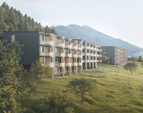 mehr lesenEin aussergewöhnlich aussichtsreiches Wohnerlebnis erwartet die zukünftigen Bewohnerinnen der Überbauung. Das Gebiet Tschuepis liegt am westlichen Siedlungsrand Littaus nahe dem Ortszentrum. Die zukünftige Stadterweiterung sieht eine Wohnbebauung vor, welche sich bis zur Hangkante auf dem Plateau des Siedlungsraums Littau erstreckt. Den Studienauftrag der Wohnbaugenossenschaft WGL gewann das Projekt «Frühling» des Teams um Lütolf und Scheuner Architekten. Sie entwickeln für die 99 Wohnungen zwei kompakte Gebäudevolumen in U-Form, die talseitig 4-geschossig und hofseitig 3-geschossig in Erscheinung treten. Eine naturbelassene Landschaft umgibt die neuen Wohnbauten.